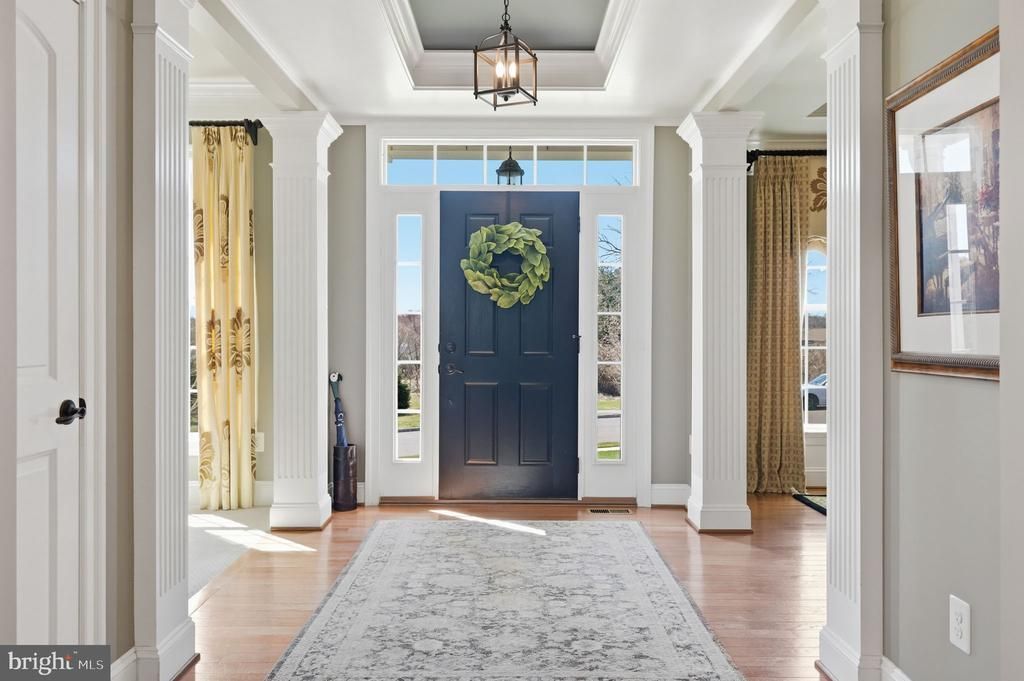 Custom built by its current owners in a private cul-de-sac community, this notable home offering 5 sizeable bedrooms and 3.5 baths was designed for versatility, comfort and timeless style. The wow factor you experience from just stepping inside the column-lined entry is just the beginning of what will entice you throughout your tour of this impressive property. Some immediate notable quality features include architectural columns, unique wall finishes and painting techniques, craftsman styled moldings, tray ceiling, transom and arched windows, and so much more! The comforting dining room and living room feel accessible and connected while still offering defined space, perfect for gathering and hosting. The heart of the home is the designer kitchen with butler pantry, spacious center island and sunroom with walls of windows and convenient access to the outdoor space. The family room is cozy with a gas fireplace and is open to the kitchen creating the perfect space to share with friends and family alike. Upstairs, showcases a generous, tray ceiling primary suite connecting to a soothing bath featuring dual vanities, three spacious bedrooms sharing a full hallway bathroom, and a convenient laundry room with sink and cabinetry. The fully finished lower level boasts an entertainment area, shiplap accented flex space that would be great for guest overflow, full bathroom, exercise room and walks up to a rear patio. Exterior highlights include a fully fenced yard, a 2-car attached garage, composite deck and paver patio with custom fire pit. Set in the Bucks County community of the Estates at Valley View and just minutes from major routes, Septa train station, and the PA Turnpike offering the perfect balance of convenience, community, and custom living all within the highly rated Central Bucks South school district.