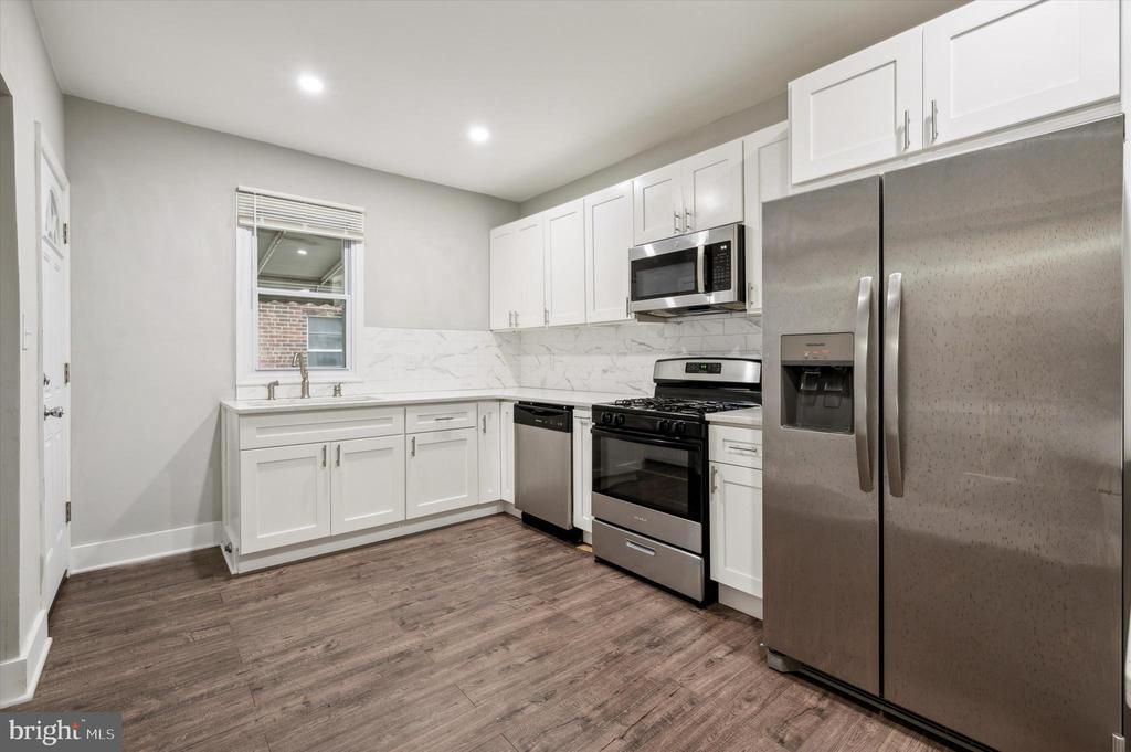Check out this beautifully remodeled 3-bedroom, 2.5-bath home in a prime Philadelphia location! Featuring front and rear porches, it offers cozy outdoor spaces to relax and enjoy the neighborhood. Inside, you’ll be welcomed by newer luxury vinyl plank flooring, recessed lighting, and an abundance of natural light. The open layout includes a spacious living and dining room, plus a stunning kitchen with quartz countertops, stainless steel appliances, and a breakfast bar. There’s also a nice built-in niche, perfect for adding open shelving, a side table, or a pantry for extra storage. A powder room completes the main floor. Upstairs, the large primary bedroom boasts a built-in closet and an updated ensuite bathroom with a tiled stall shower and vanity. Two additional bedrooms, both nicely sized, offer ample closet space. The middle bedroom enjoys direct access to the full hallway bathroom, featuring a tub-shower combo and vanity. For added convenience, there’s a discreet laundry closet on this floor with a stacked washer and dryer. The finished basement provides additional living space with a walkout to the rear of the home. A full renovation to this home assures comfort for years to come, with all-new insulation, central air, electrical wiring, plumbing, and more. Situated in Allegheny West, this home is near public transportation, making commutes easy, and close to Fairmount Park for outdoor recreation. Its proximity to local shops and schools, including Strawberry Mansion High School, adds to its appeal, making it an excellent choice for anyone seeking a vibrant, connected urban environment in Philadelphia. Schedule an appointment to see your new home today!