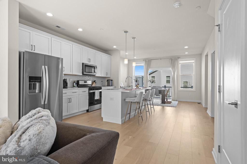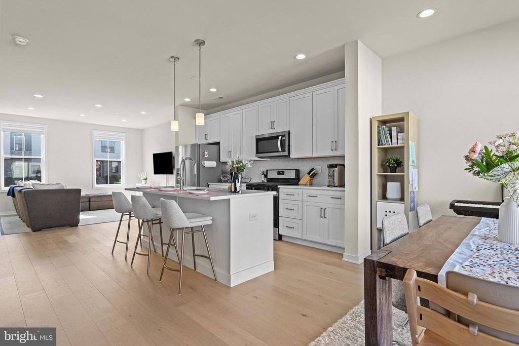 Welcome to 604 Hoopes Lane, a beautifully upgraded Harris model townhome in the sought-after Franklin Station community by Toll Brothers. Built in 2022, this home offers turnkey living with a bright, open floor plan and thoughtfully selected finishes throughout. The main level features an ideal everyday flow, seamlessly connecting the living, dining, and kitchen spaces. Upgraded wide-plank oak floors, recessed lighting, and expansive windows create a light-filled, airy feel, while sliding glass doors lead to a private deck—perfect for morning coffee or an evening unwind. The stylish, well-appointed kitchen anchors the space, featuring upgraded shaker cabinetry, quartz countertops, a herringbone tile backsplash, stainless steel appliances, and a large center island with pendant lighting and seating. A walk-in pantry provides excellent storage, and a powder room with pedestal sink completes the main level. Upstairs, the primary suite offers a walk-in closet and an en-suite bath with a dual vanity and frameless glass shower. Two additional bedrooms share a well-appointed hall bath, and a conveniently located second-floor laundry adds everyday ease. Dual-zone heating and cooling offer year-round efficiency and comfort. The lower level, accessed from the attached two-car garage, provides a versatile landing space ideal for a mudroom, home office, or flex area, along with a separate unfinished storage area. Effortless living with outstanding community amenities, including a gorgeous clubhouse with gas fireplace and cathedral ceiling, premier fitness center, outdoor swimming pool, fire pit, and scenic walking trails—all just steps from your door. Award winning Rose Tree Media School District. Direct trail access to the Wawa SEPTA station and easy access to major roadways makes commuting simple, while nearby Media Borough offers a vibrant mix of dining, shopping, and everyday conveniences.